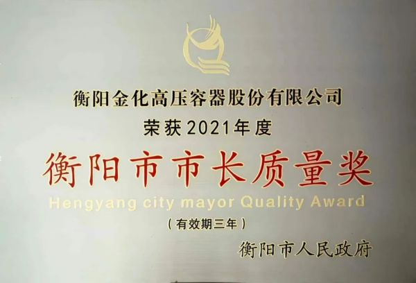 湖南金化科技集團(tuán)旗下金化高容榮膺衡陽市"第七屆市長質(zhì)量獎(jiǎng)“