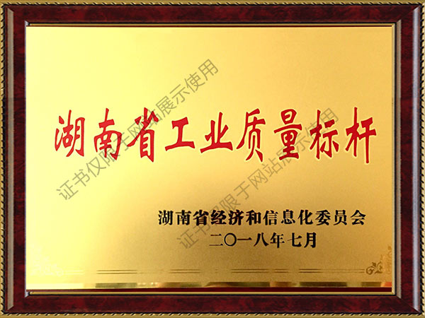 湖南省工業(yè)質(zhì)量標(biāo)桿2018